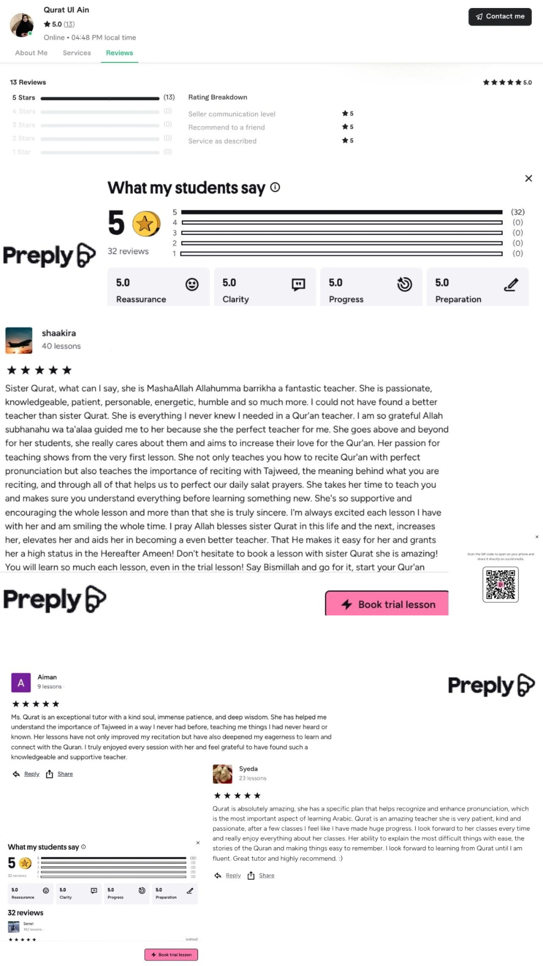 Checkout my free Tajweed lessons and experience my teaching style before committing.